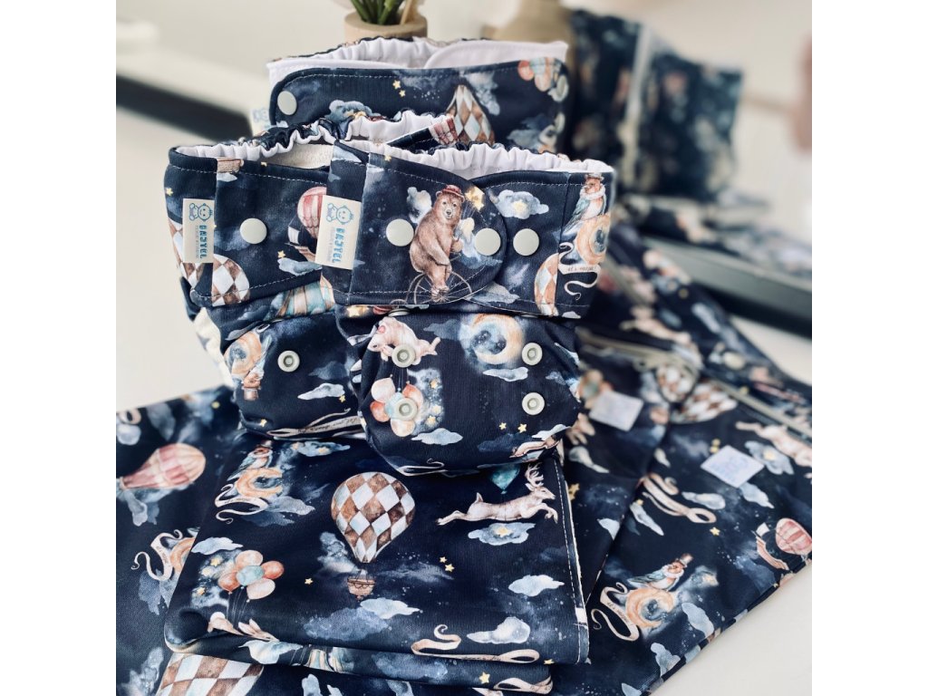 V našem sortimentu můžete prozatím nalézt od firmy Bajtel látkové pleny - svrchní kalhotky, plenky AIO v různých velikostech (s klasickým zapínáním vpředu na patentky a s bočním zapínáním "side-snap"), vkládací plenky s evolonem, opakovaně použitelné pratelné přebalovací podložky, PUL pytlíky na pleny či jiné dětské věci a dětské bryndáčky.