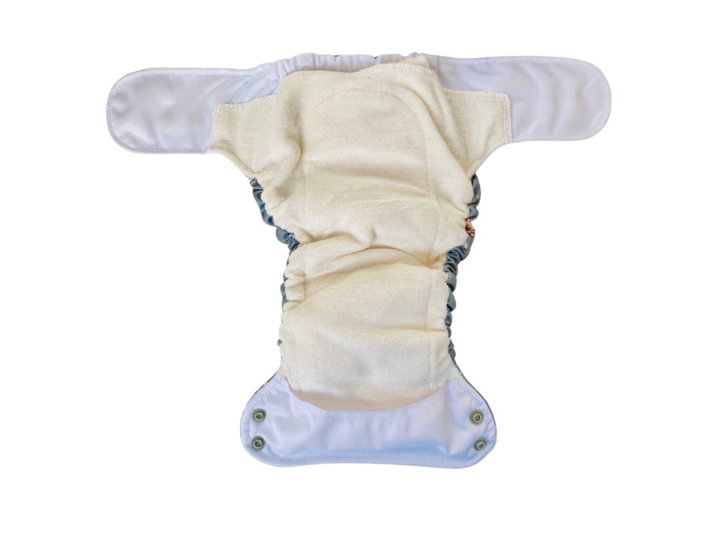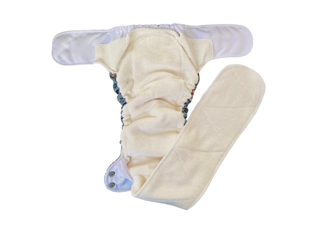 Látková plenka s bočním zapínáním pro pohodlné přebalování starších a aktivních dětí. Univerzální velikost (7–15 kg), savý třívrstvý jazyk, prodyšná nepropustná vrstva PUL a praktická kapsa pro přidání boosteru.