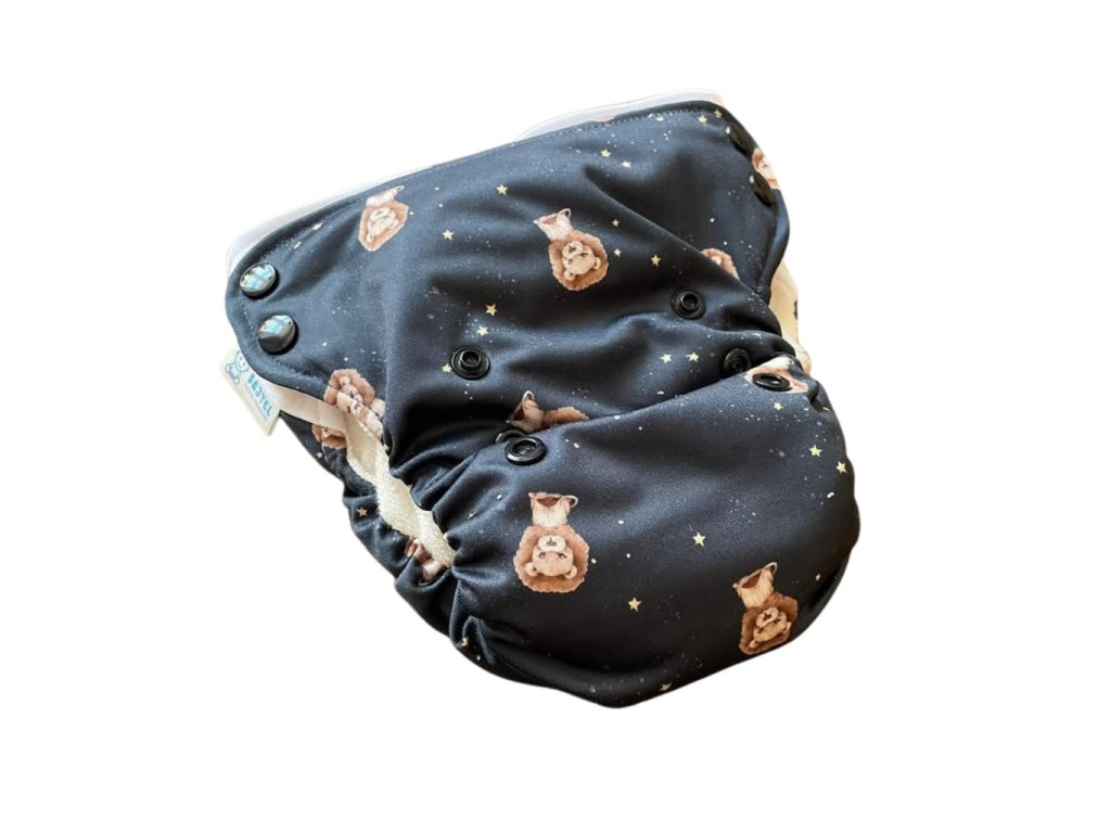Látková plenka s bočním zapínáním pro pohodlné přebalování starších a aktivních dětí. Univerzální velikost (7–15 kg), savý třívrstvý jazyk, prodyšná nepropustná vrstva PUL a praktická kapsa pro přidání boosteru.