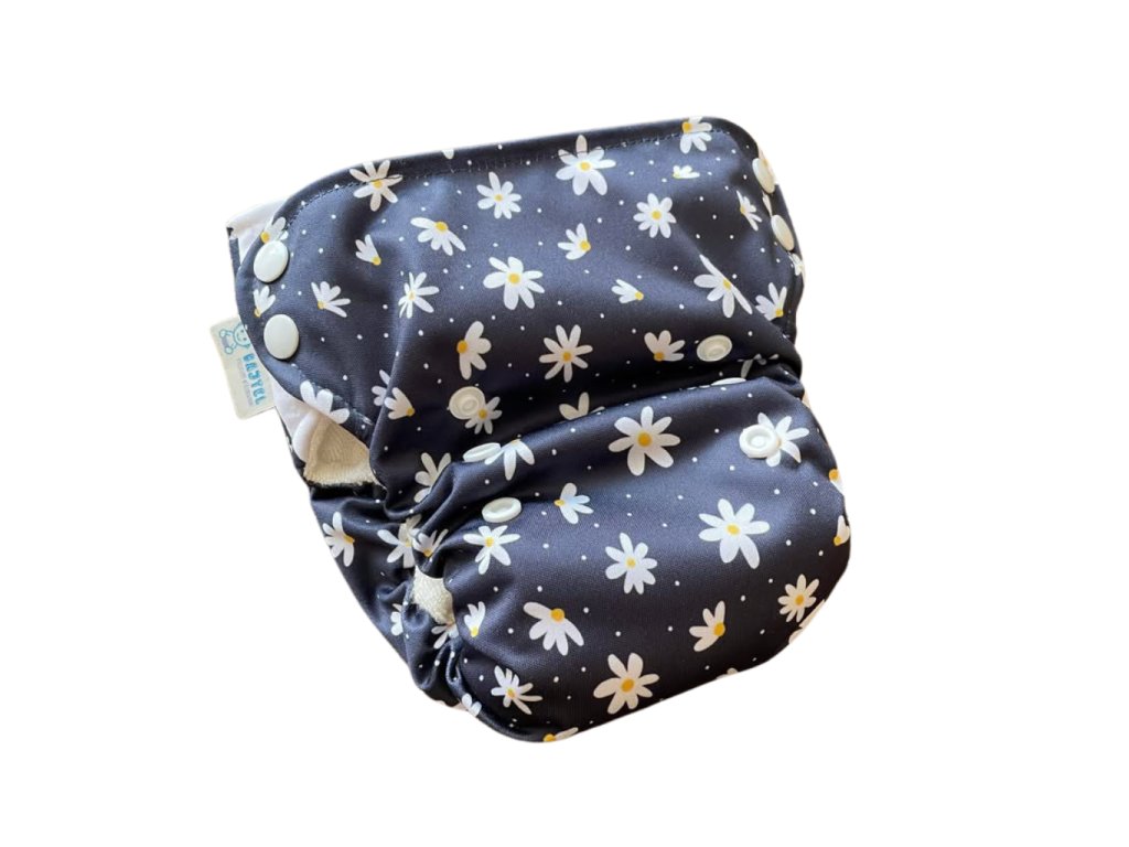 Látková plenka s bočním zapínáním pro pohodlné přebalování starších a aktivních dětí. Univerzální velikost (7–15 kg), savý třívrstvý jazyk, prodyšná nepropustná vrstva PUL a praktická kapsa pro přidání boosteru.