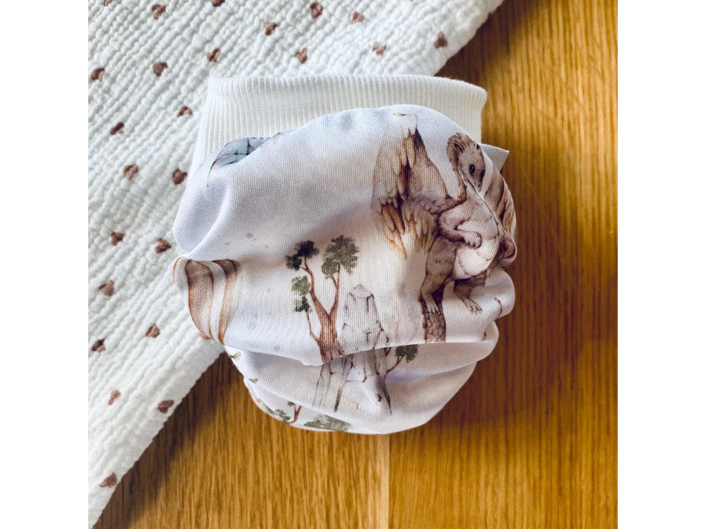 Díky pružnému pasu je velmi jemná a netlačí na bříško. Plena má přišitou vkládačku, kterou si můžete přizpůsobit podle potřeby. Uvnitř se také nachází kapsa, do které je všita jedna vrstva materiálu pro zvýšení savosti.