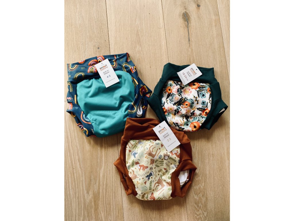 Smart Bottoms natahovací AIO je inovativní plenka typu "vše v jednom", kterou lze snadno natáhnout. Je vyrobena ze směsi certifikované bio bavlny a konopí. Plena má uvnitř kapsu a umožňuje tak vložení další vložky pro ještě větší savost. Díky velmi pružnému pasu a otvorům pro nohy se plenka snadno obléká a svléká, i u těch nejživějších dětí.