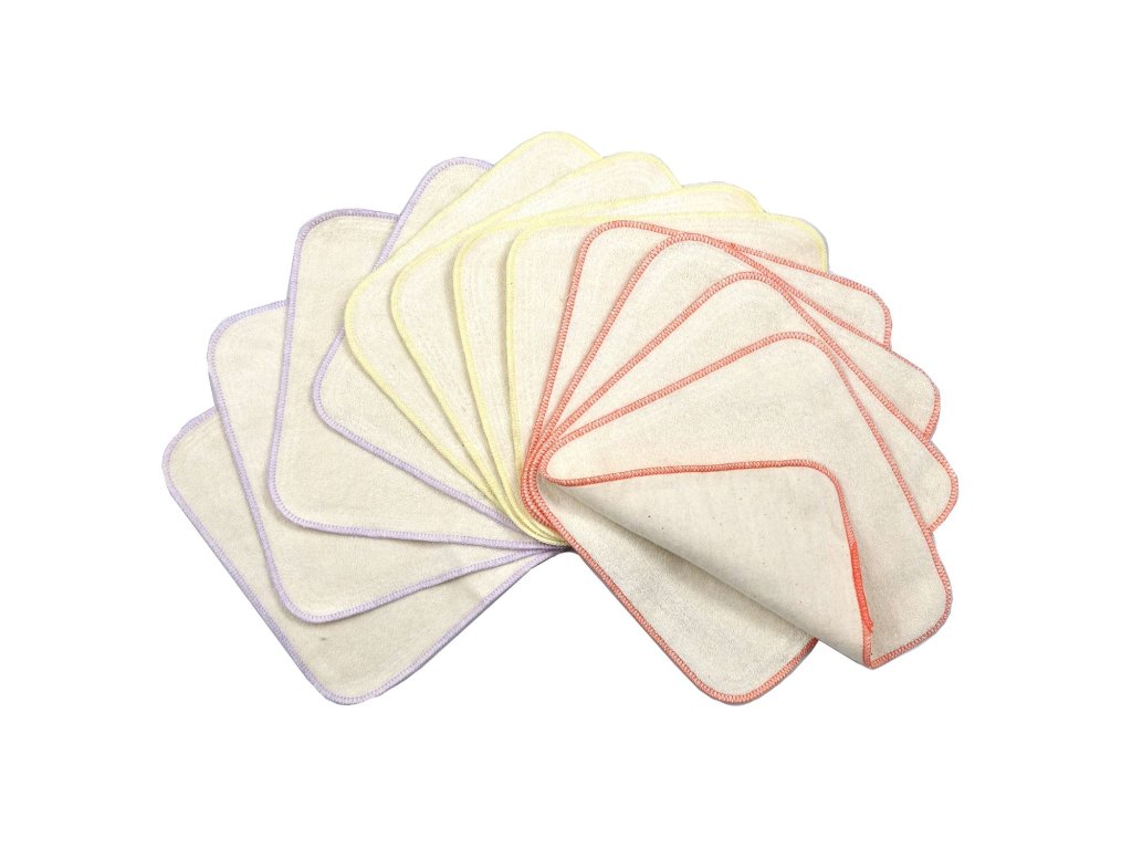 Jemné a dvouvrstvé látkové ubrousky z bavlněného flanelu a froté.