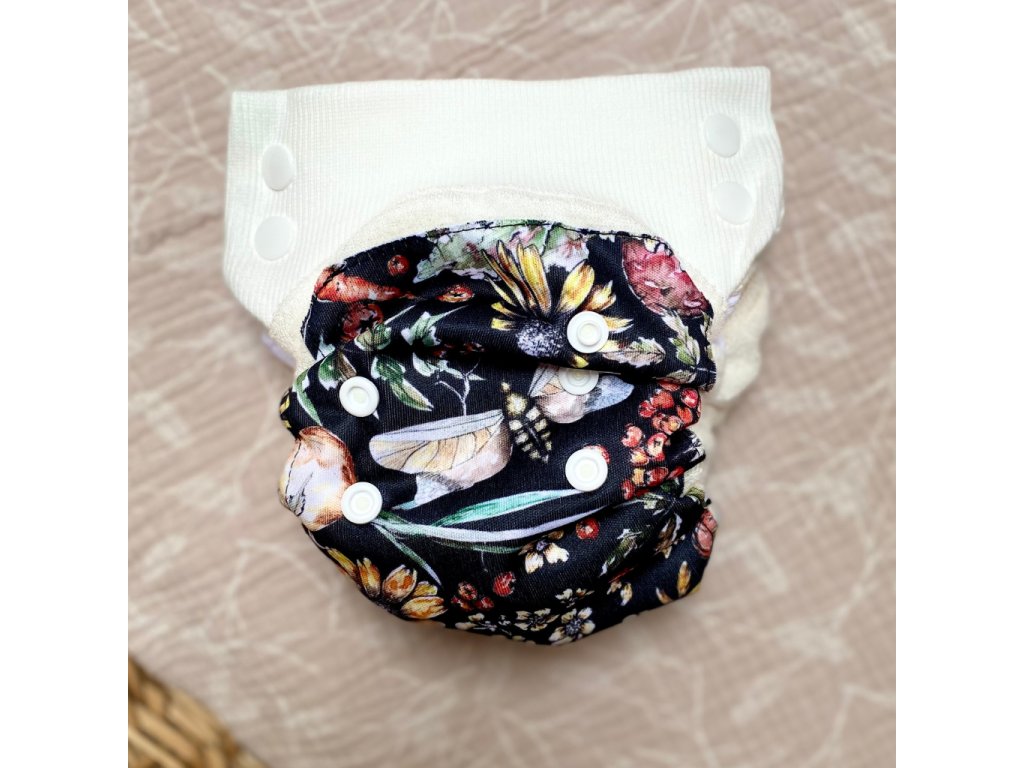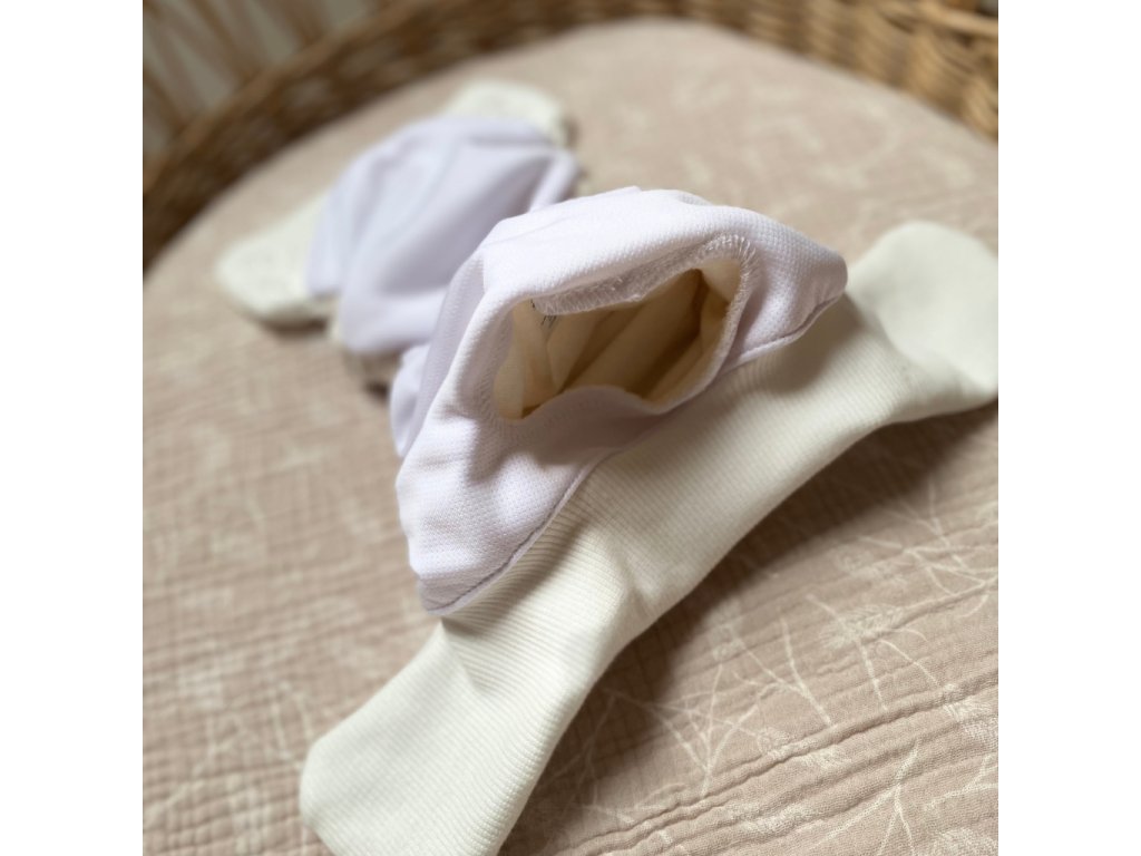 Uvnitř plenky se nachází kapsa na savou vkládačku, díky které můžete upravit savost podle potřeby. Šířka v rozkroku je 12–13 cm a dovnitř bez problémů pasují vkládačky o šířce až cca 10-11 cm. Všitý PUL panel pomáhá lépe rozvádět vlhkost a zvyšuje celkovou funkčnost plenky.