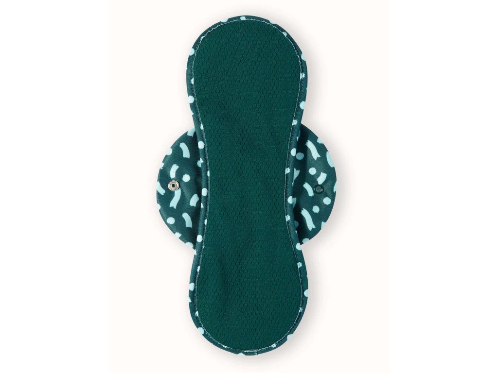 Nora ekologické vložky, částečně vyrobené z recyklovaných materiálů, ve velikosti Heavy pojmou až sedmkrát více krve než jednorázové tampony. V našem designu Celeste mají tyto opakovaně použitelné menstruační vložky štíhlý a tvarovaný tvar, který se přizpůsobí vašemu tělu pro větší pohodlí. A abstraktní modrozelený potisk vytváří zábavnou atmosféru pro dny, kdy nejste vždycky v pohodě.
