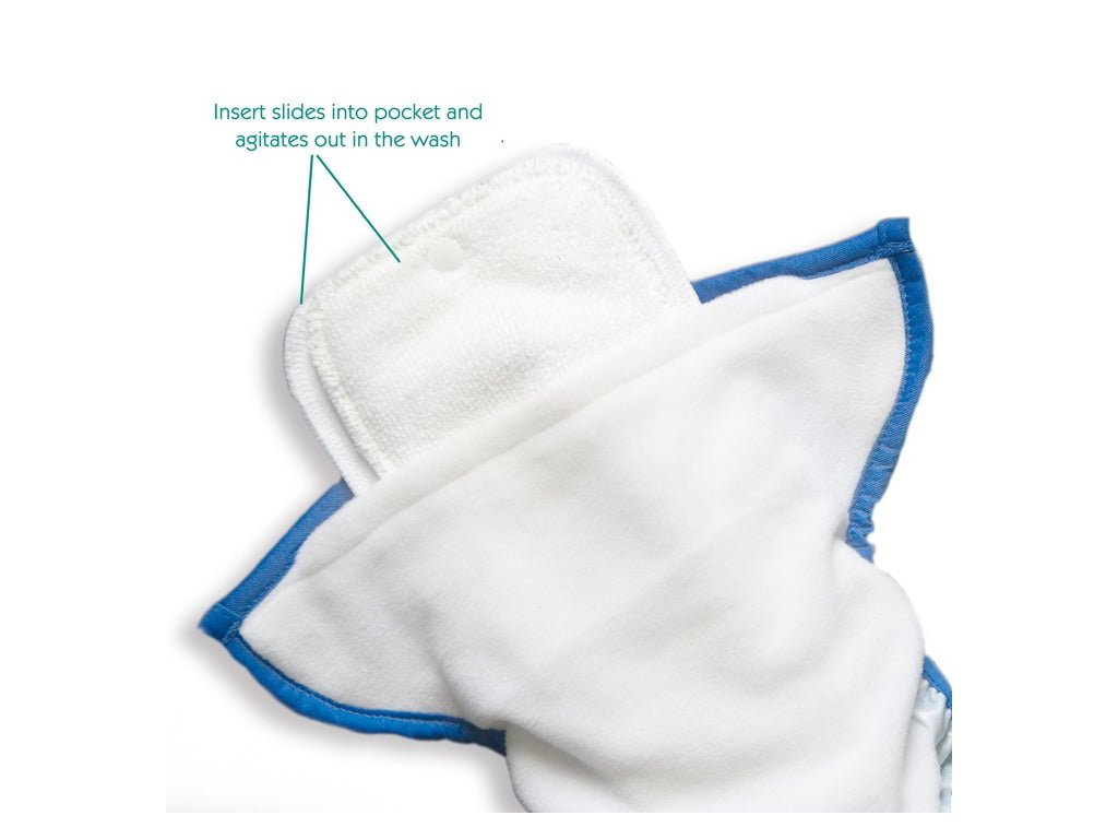 Před praním nemusíte vkládačky vyndávat z kapsy - během pracího cyklu se "vytřepou" z plenky samy.
