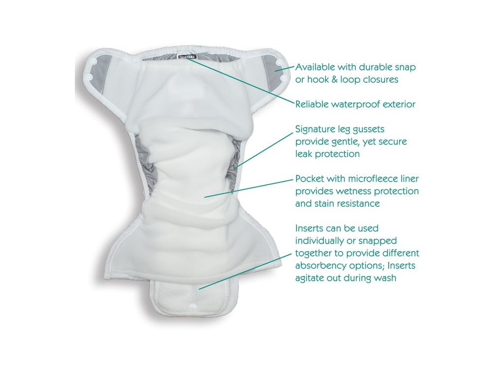 Dostupná kapsová plena s ověřeným střihem thirsties s vnitřní dotykovou vrstvou z mikroflísu pro suchý zadeček.