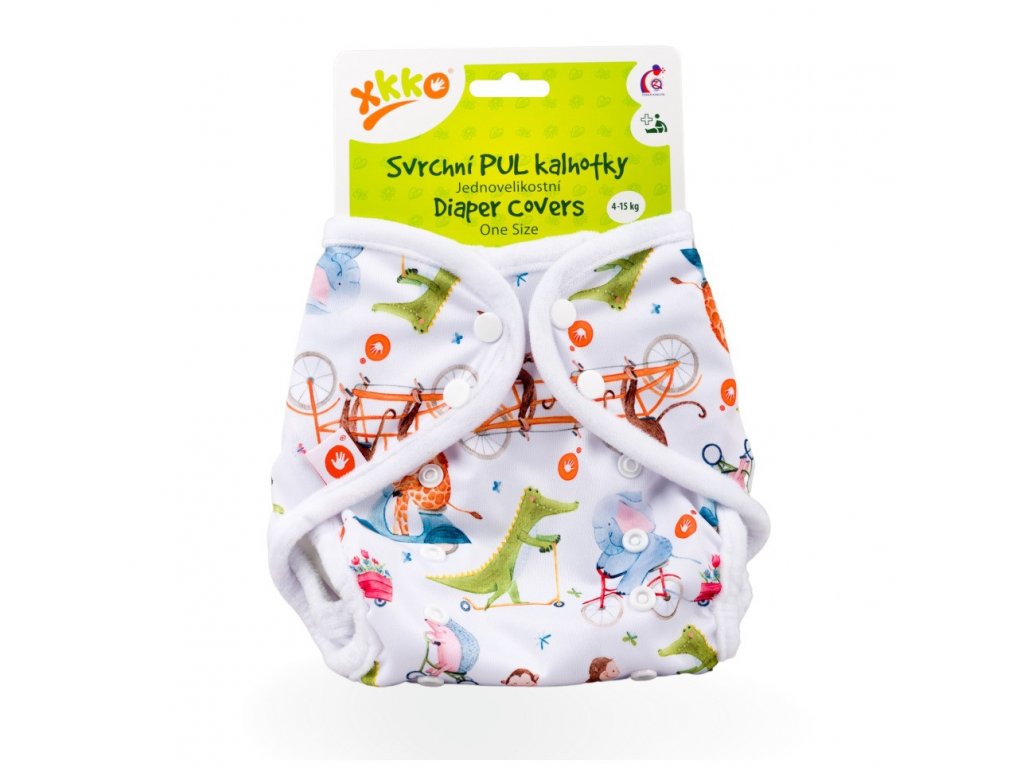 Jednovelikostní nepromokavé svrchní kalhotky s PUL zátěrem (4-15 kg) se zapínáním na patentky.