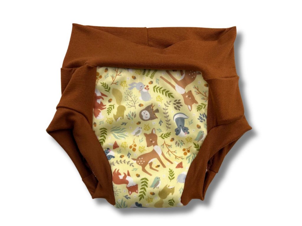 Zóna promokavosti je vyztužena laminovaným nepromokavým polyuretanem (PUL)
