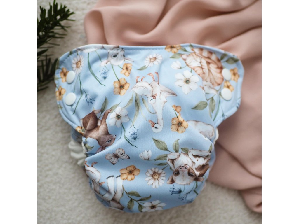 Plenka vše v jednom (AIO) ve střihu Pants - se zapínáním na bocích. Díky použití pružného pasu lze plenku oblékat i jako běžné kalhotky.
