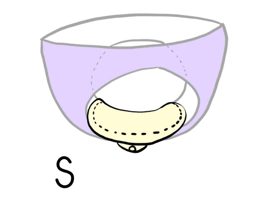 - S - čistě biobavlněná, bez nepropustné PUL vrstv - maximálně prodyšná varianta. Doporučujeme jako zálohu menstruačního kalíšku nebo jako slipovku.